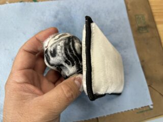 Tape up anything you don’t want to get leather dye on. The dye can be messy, so I would make sure to do this over a shop towel or something you don’t mind getting dye on, and also wear some nitrile gloves too.