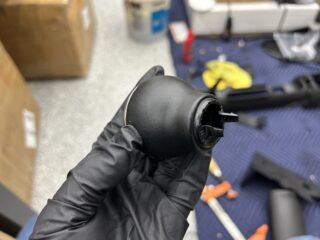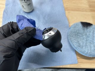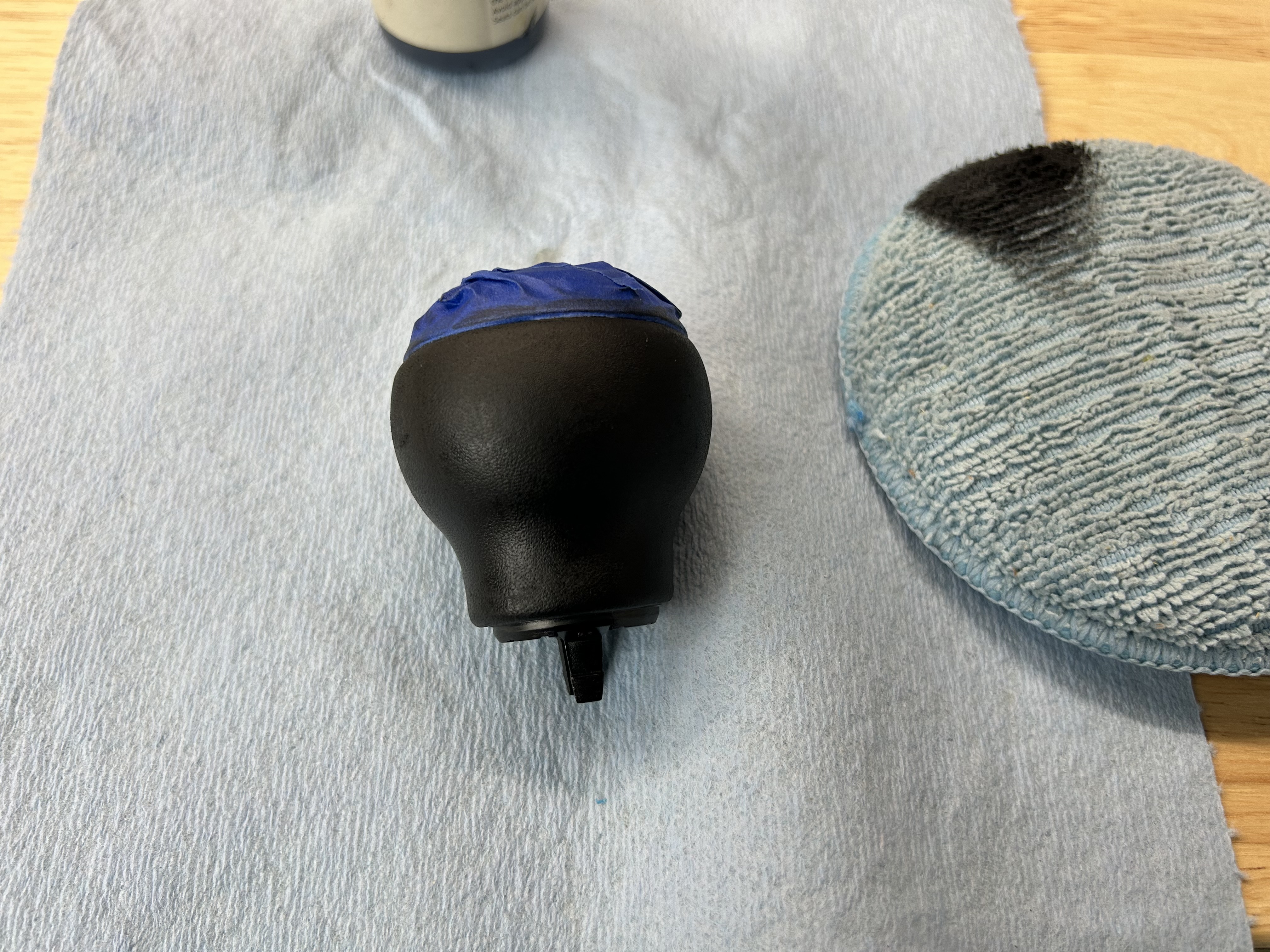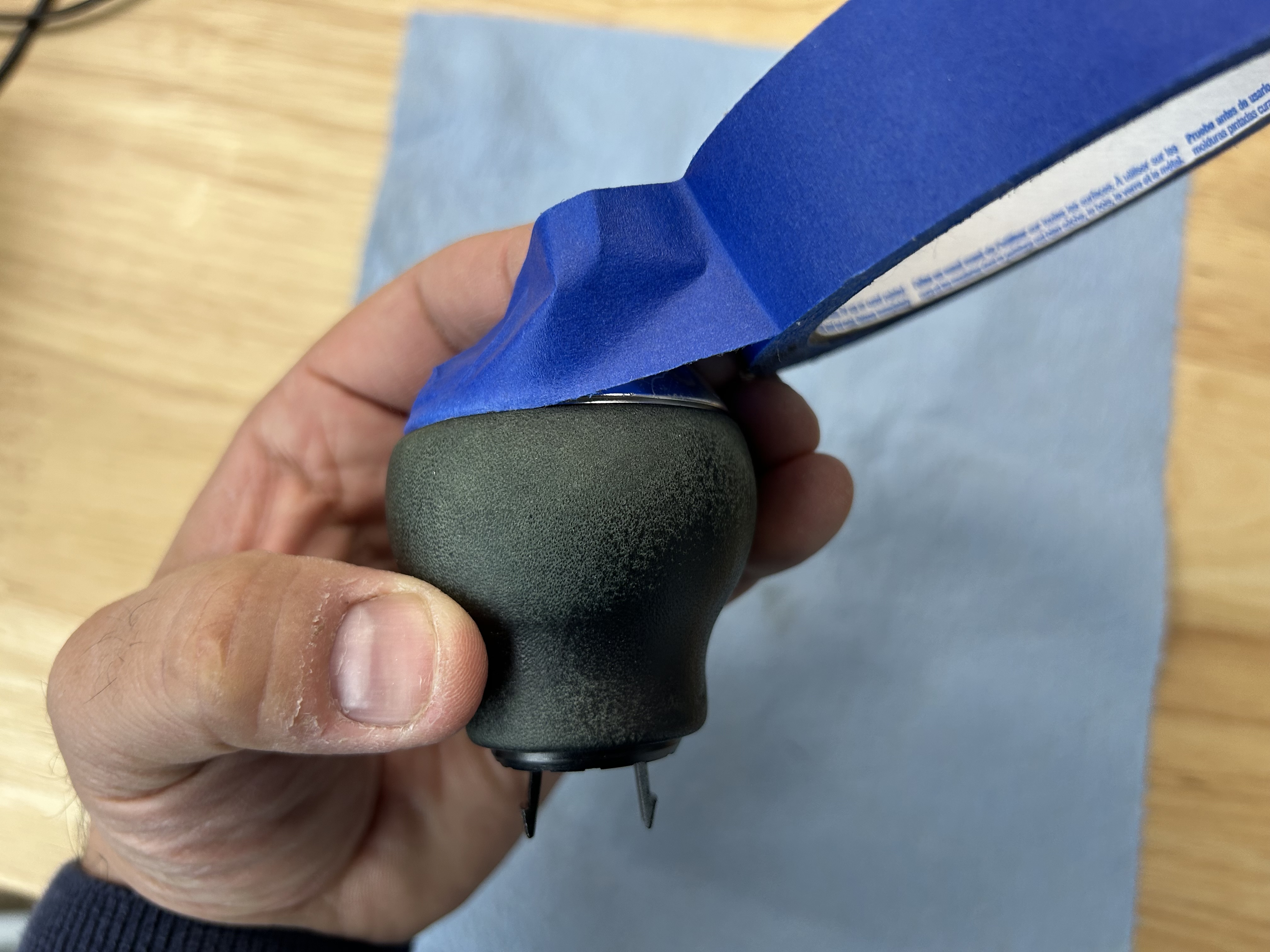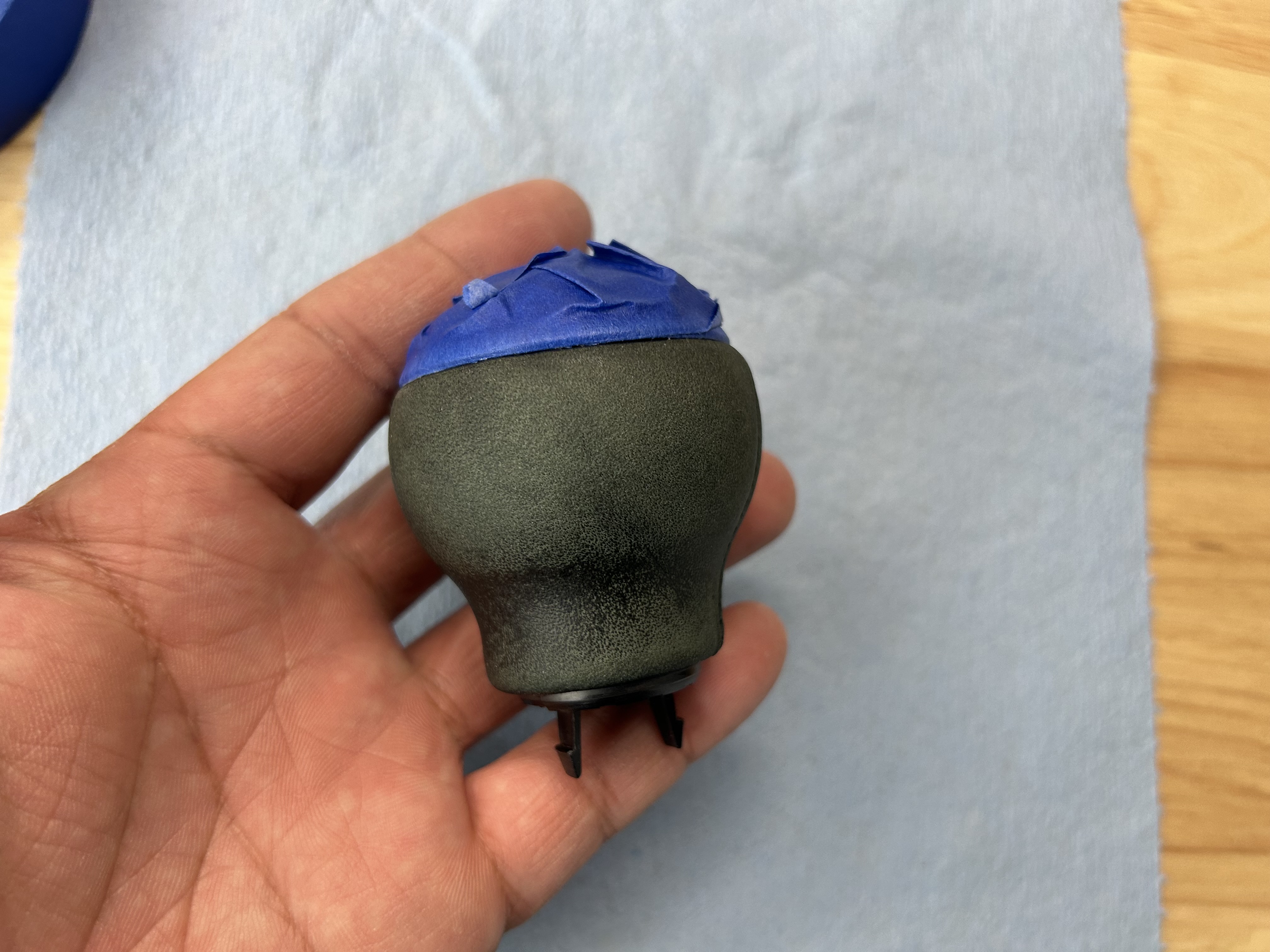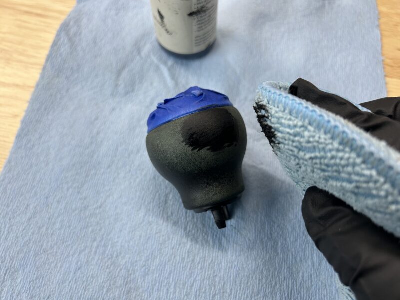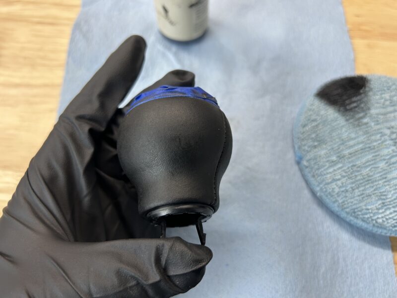 Remove the tape and ensure none of the leather dye has gotten on any other part of the shift knob that you don’t want it on. If you did get any dye on anything, use isopropyl alcohol to remove it.