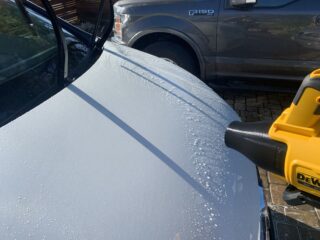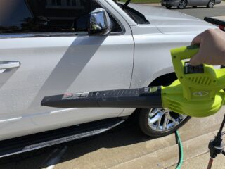 If your car is protected with a wax, paint sealant, or coating and therefore your car’s paint is hydrophobic (i.e. water beads up on your car and doesn’t “stick” to your paint), then using a leaf blower is one of the best ways to dry your car since you can just blow the water off of your car. It doesn’t matter if you’re using an electric or gas leaf blower. What does matter is the CFM (cubic feet per minute) rating, which will basically tell you how much air volume can go through the blower.