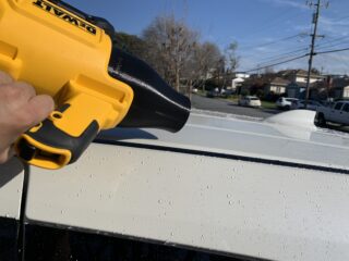 If your car has a wax, paint sealant, or coating, the absolute best way to dry your car is to use a battery-powered leaf blower that has a high CFM rating to blow off the majority of the water off your car right off the bat. Also make sure to blow out all the seams and crevices (especially those areas that trap water and will eventually run down later). Then, you’ll follow up with a microfiber drying towel to dry up the residual water.