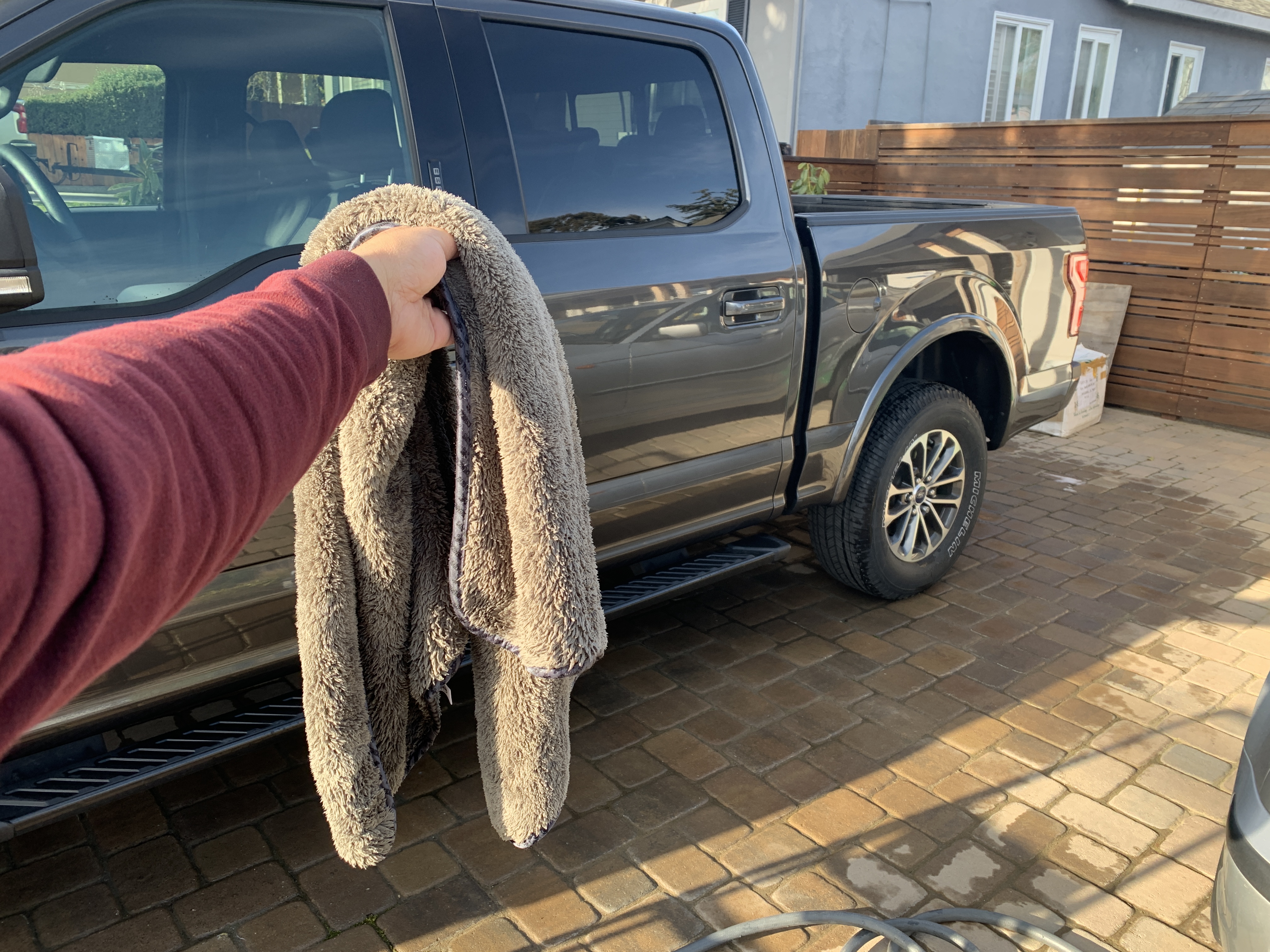 I’ll start off with one of the most popular options, although it’s not a good way to dry your car in my opinion. Yes, it’s large. Yes, it’s absorbent. So then why wouldn’t it be good for drying your car? Well, if you’ve actually tried drying your car with it before, you’ll quickly realize that it only works well for the first few panels until the drying towel gets saturated with water. Then, it becomes very heavy and hard to manage in your hands, even though you’ve only maybe dried like 1/4 of your car.