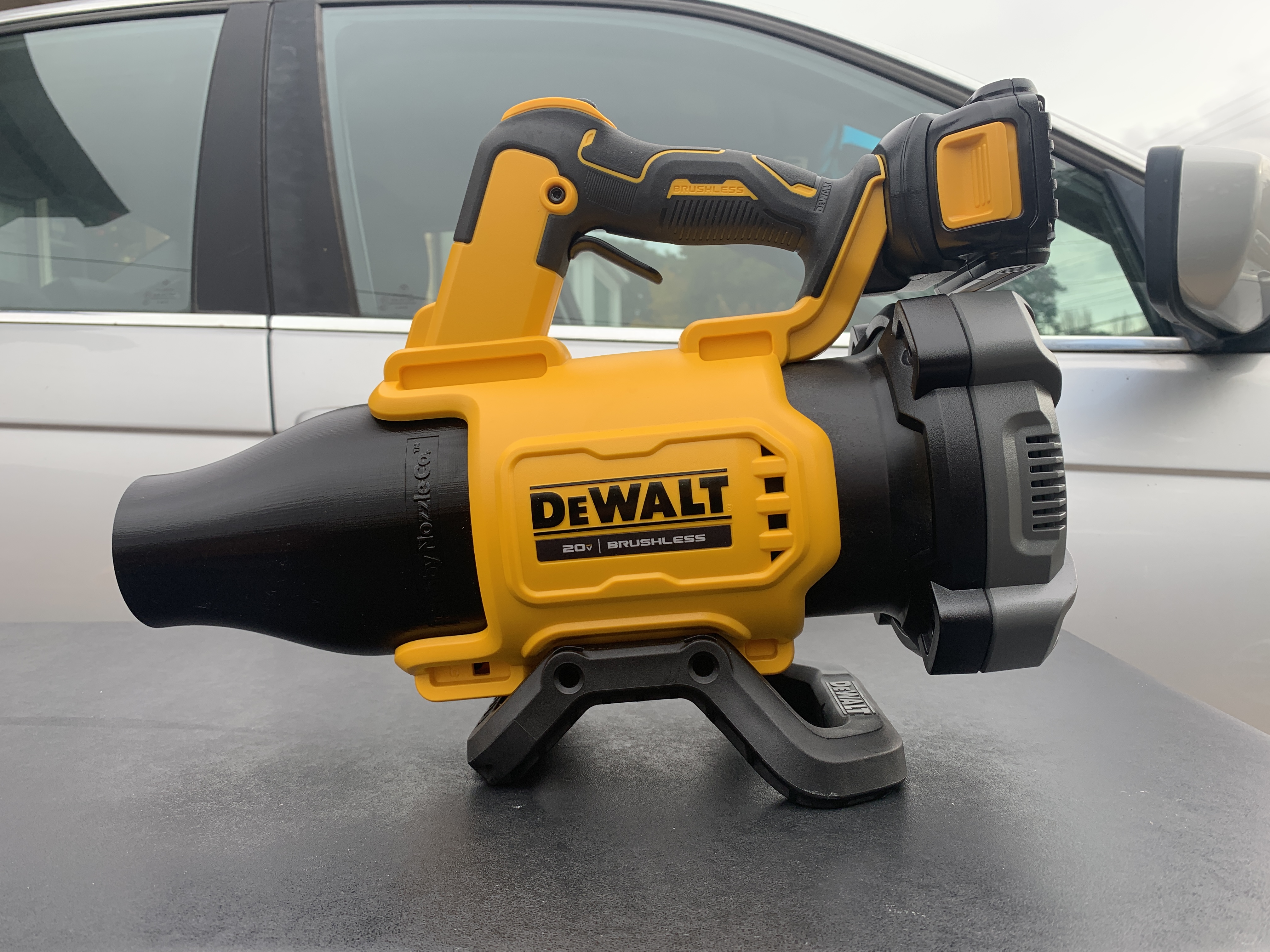 Here are a few options for battery-powered leaf blowers that work really well for blow-drying your car. You can also get stubby nozzles from the Stubby Nozzle Co. that not only provide you with a shortened nozzle, but they also have a soft tip that protects you from damaging your car in case you accidentally bump into it.
