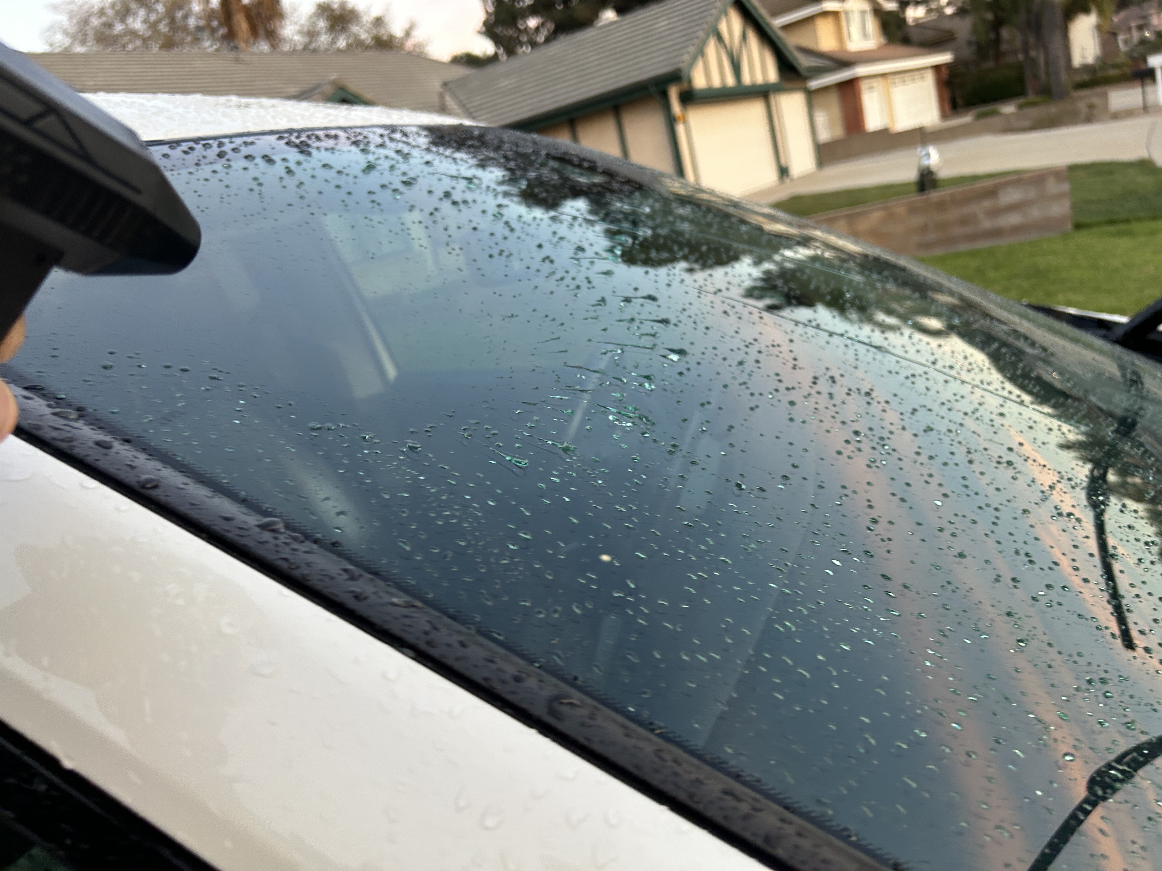 Typically if your car is protected and it is still holding up well, you can use a strong leaf blower to blow about 90-95% of the water off your car. As an added bonus, a leaf blower is extremely helpful in blowing out crevices and seams that would otherwise hide water. This water can eventually leak out slowly across your paint, leaving water marks behind. After blowing your vehicle down with the leaf blower, you can follow up with a drying microfiber towel to get the remaining 5-10% of residual water left behind.