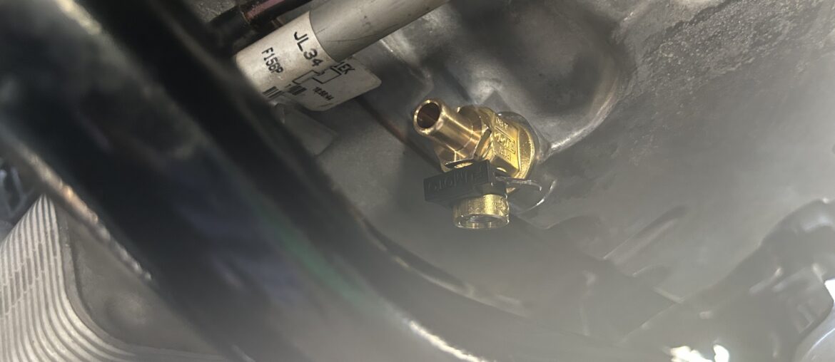 I was concerned about the valve handle potentially being knocked into an open position and the oil draining out while driving, but the valve is designed to keep this from happening. There is even a little plastic clip that further prevents this from happening. You’ll see from the photos I’ve included in this post showing how there are safety devices in place to keep this from happening.