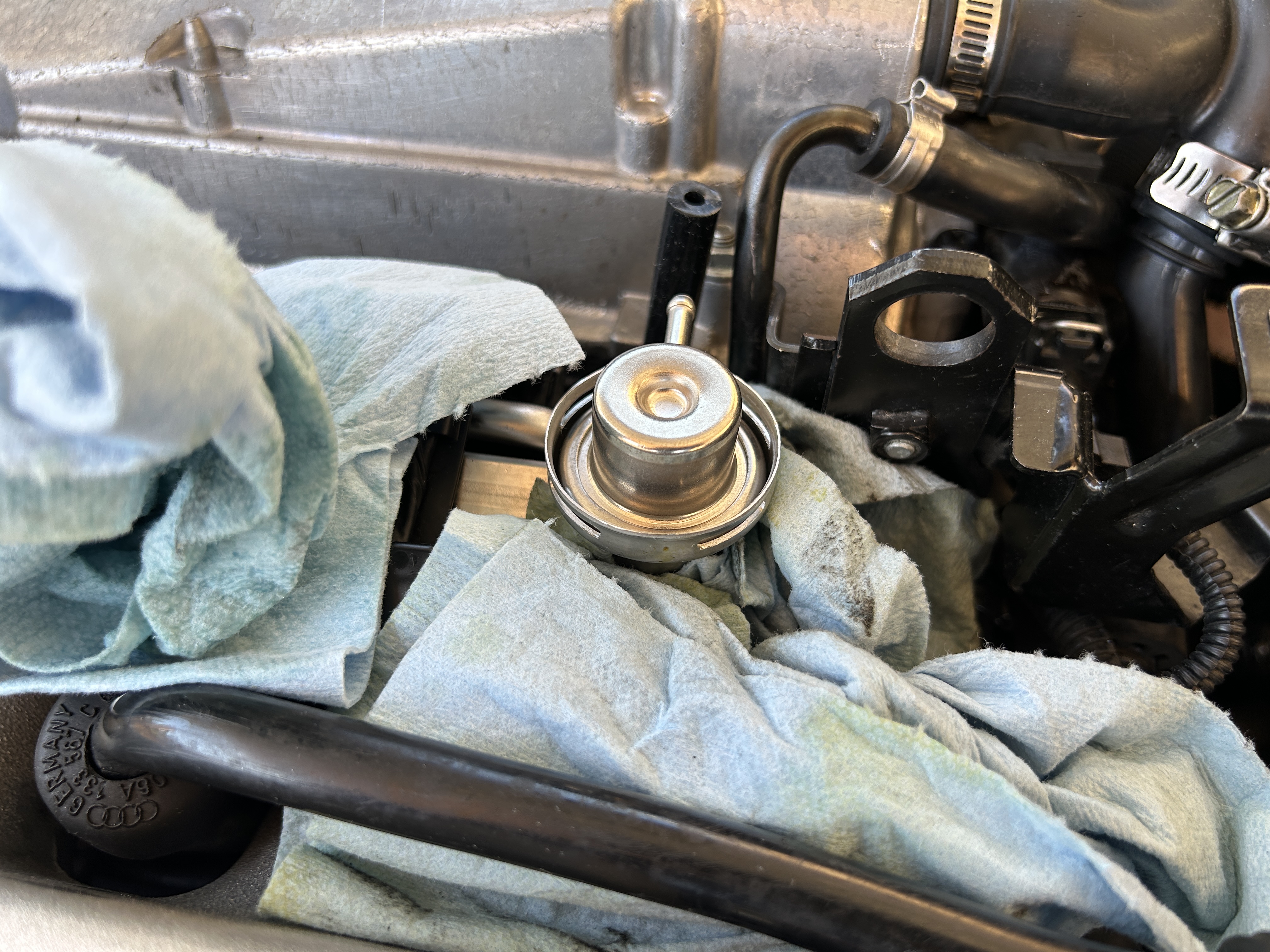The fuel pressure regulator has an OEM part number of 037133035C, and is a part that is used across many different Audi and Volkswagen platforms. It can easily be found as an aftermarket part and from my experience has worked perfectly well. A more well-known brand may cost at least $25, a genuine OEM one will be extremely expensive, and an aftermarket is pretty affordable at around $10-$15. I went with the cheaper aftermarket unit and it has worked perfectly well for me.