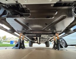 On the 13th generation Ford F-150, you may have one of these fiber under covers installed under the transmission. This part is commonly referred to as a “diaper” in the F-150 community. It’s main purpose is to reduce road noise, although it doubles as a catch for leaking fluid. In most cases, these diapers end up soaking up fluid and/or get ripped off, which leads to the cover dragging on the road or even ripping off completely.